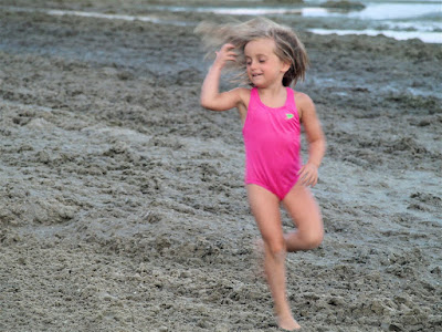 A shaky start for our dog Lucy... but she warmed up to the whole concept of beach running.